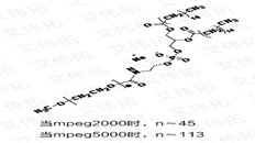 5、英文化學名:N-(Carbonyl-methoxypolyethylene glycol 2000)-1,2-dipalmitoyl-sn-glycerol-3-phosphoethanolamine,sodium salt